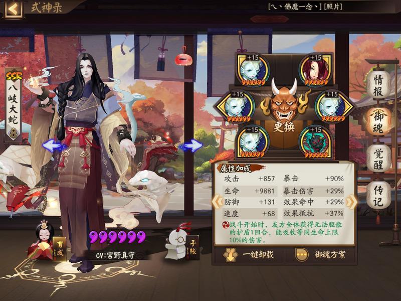 1.式神:缘结神+鬼王酒吞童子+辉夜姬+云外镜+八岐大蛇