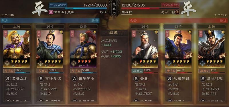 其自带战法累世立名,是一个需要回合准备的兵刃与谋略混合伤害,并且自身为主将时可以给全军提高80的统率,并且附带减少敌方统率的效果。