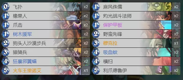 与狂野快攻德以及超生德不同的是,这套卡组几乎舍弃了任何buff,卡组核心只有两个字:伤害。卡组带满了诸如爪击,狼骑兵,麻风侏儒,利爪德鲁伊等等直伤,同时引入了支线任务体系,配合野蛮先锋也使得在对阵快攻时有一定返场能力。