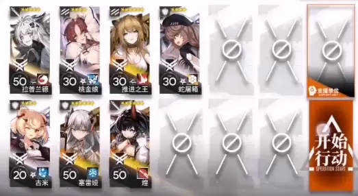 先锋:桃金娘(二技能帮助治疗)、推进之王(必须)