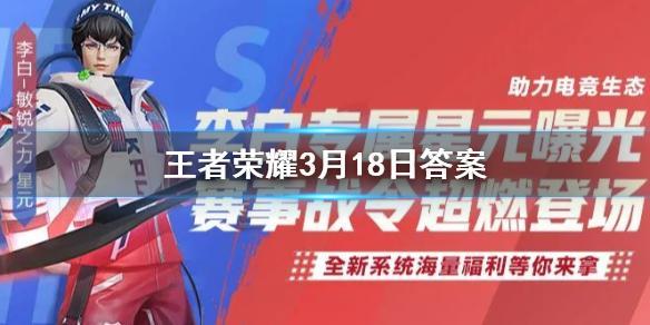 即将开启的赛事战令即将上新哪一个英雄的星元皮肤呢?这是王者荣耀微信2020年3月18日每日一题问题,回答正确可获得游戏奖励哦!接下来就让我们来看一看答案吧。