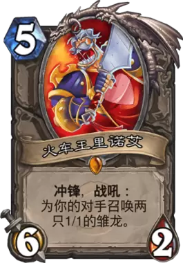这是一张即使早早就遭到了削弱却仍然是大多数标准模式快攻卡组的必带橙卡,无法站场的逗比特效无法阻拦其带给玩家突然斩杀的快感,所谓快攻等火车王慢速等奇利亚斯。但是在凤凰年火车王也将进入荣誉室,以后我们只能在狂野的少数卡组见到这位老伙伴了。