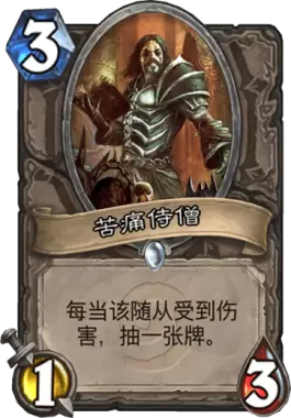 中立卡中拥有超强过牌能力上限的随从,玩家们也把能过3张牌的苦痛称为“贴吧苦痛”,活跃于各种需要过牌的卡组以及带有自残能力的战士卡组。不过相对来说需要过牌的大多是狂野的一些OTK卡组,退居荣誉室对标准影响有限。