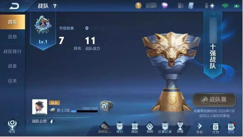 战队继承:赛季更新时,战队会根据之前的级别,获得新赛季继承级别(国、省级继承到市级、市级继承到区级)。