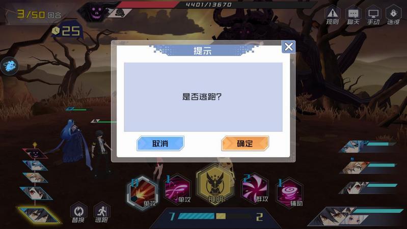 在自己的回合范围内可使用逃跑且必定成功,双方其中一人逃跑时,该玩家的战斗单位变为自动挂机,战斗继续,逃跑方不会获得此次战斗的任何收益。双方都逃跑时,战斗自动结束,且战斗结果为失败,双方都不获得此次战斗的任何收益。进入战斗时判断体力值和次数,战斗胜利后扣除体力和次数,失败或退出不扣体力和次数。