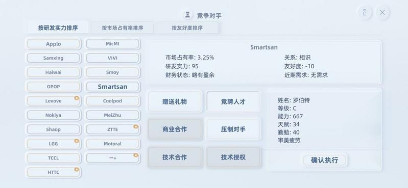 5、如果你的手机分数超过仇敌状态竞争对手的研发实力,则不会受到打压。