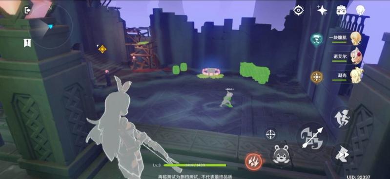 庙宇里怎么会少了怪物,接下来,就遇见了拿盾牌的丘丘人,这是会告诉你元素视野的功能。