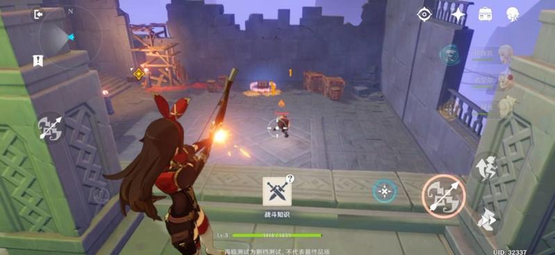 进入庙宇,打开机关,会出现解谜的教程,告诉你可以点燃这个世界的可燃物,烧掉之后就可以解开被封锁的道路,至少迷宫是这样。安柏的攻击需要蓄力到出现红光,才会在射出的箭上带上火焰。