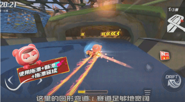 方法非常的简单,咱们在赛道的中央进行入弯,过了第一个弯道后使用断漂补气,随后在使用拖漂延续的技巧,说白了就是使用连招:拖漂→断漂补气→拖漂延续,掌握好这三个技巧,你也能一漂到底!