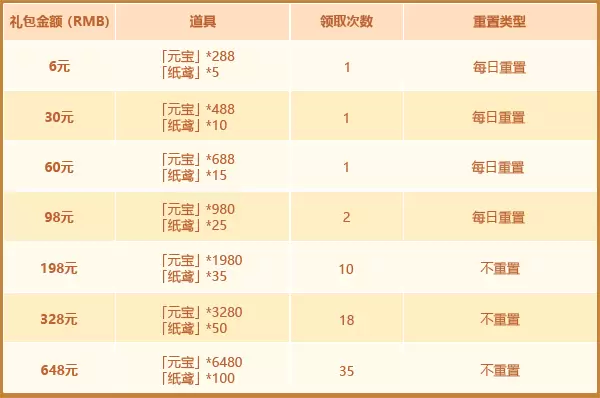 本次充值所带来的内容如下: