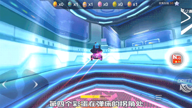 第四个彩蛋就在弹床的拐角处,在跳上弹床时记得往左漂移回头,就能看到彩蛋啦。
