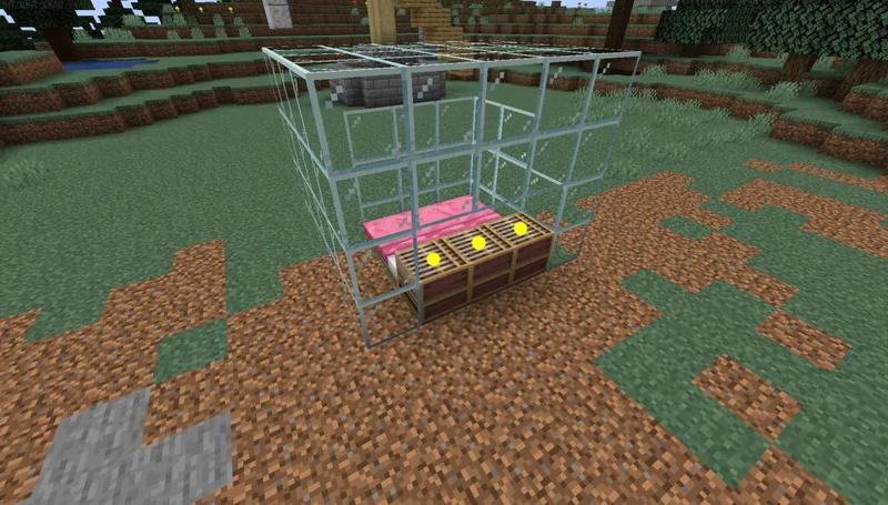 再往床的位置运上三个村民,这样这个刷铁机的核心生成部分就完工了。
