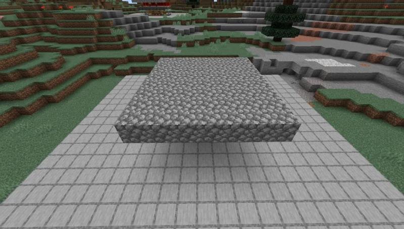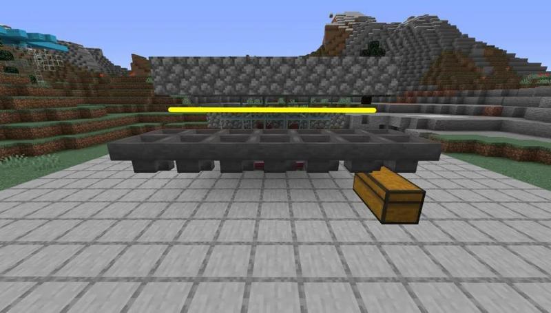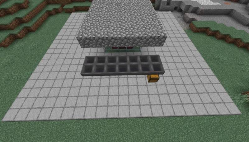 注意图中黄线部分,圆石平台和漏斗要隔开一格的高度。