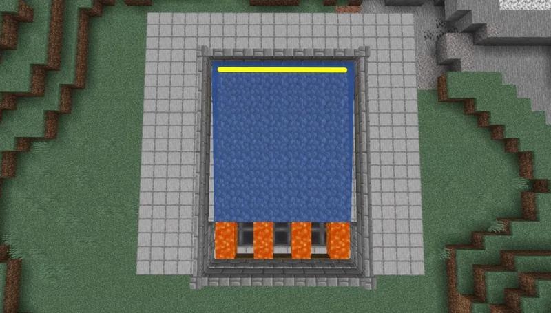 接着倒上岩浆,并在图中黄线处倒上一排水,这样收集装置就做好啦。