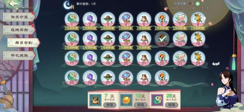 游戏内每日签到即可获得100绑玉,但是每个月只能享受4次绑玉奖励,签到满28天可以额外获取500绑玉,是后期获取绑玉常见途径。