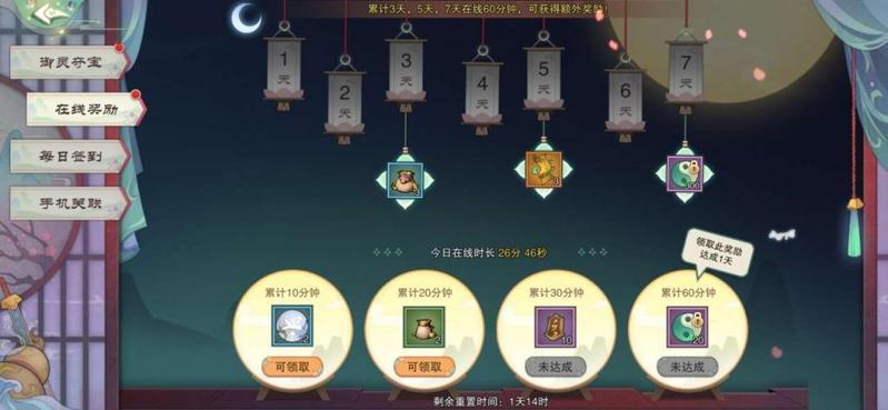 游戏内累计登录时长达到60分钟即可获得20绑玉,同时累积60分钟在线达到7天还可以额外获得300绑玉。