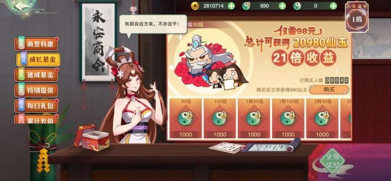 玩家在游戏内的永安商会中购买成长基金的话,在达到对应等级后即可获得1000绑玉奖励,累计可获得20980枚绑玉,但毕竟是氪金手段,小伙伴们根据自身情况安排即可。