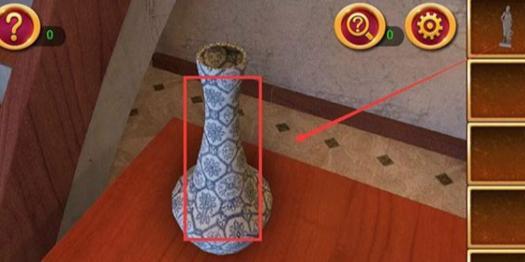 2、用雕像砸开桌上的花瓶拿到小刀。