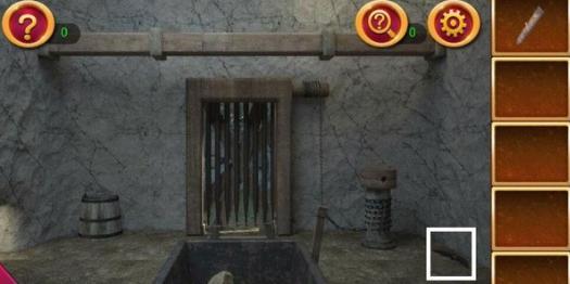 5、回到左边,用小刀割断水井上面的绳子,点击水桶拿到水桶。