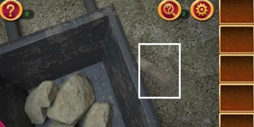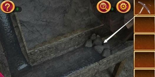 3、将木棒与锄头结合成为完整的锄头,回到左边房间用锄头将水车里的石头弄开。