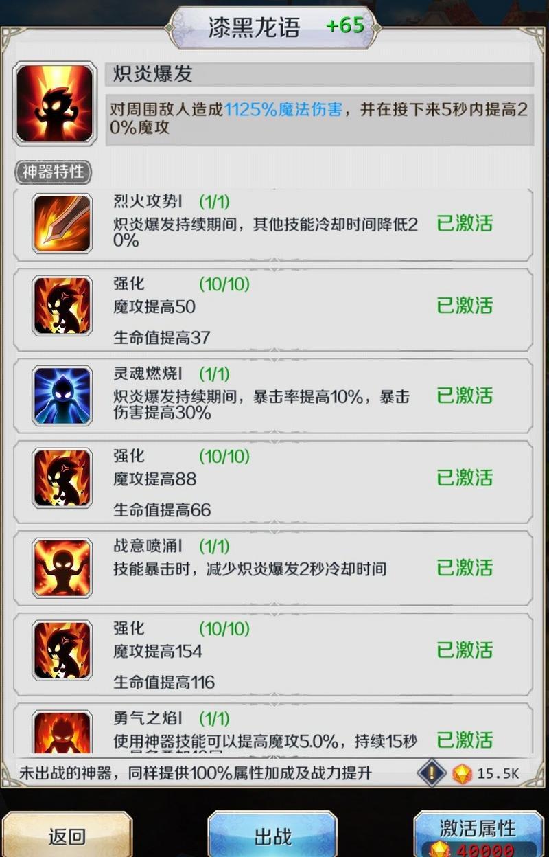 补充(勇气之焰,最多叠加10层) 这个神器是常见的法系输出,其技能的增益关键词有:提高魔攻,暴击,减少冷却。其技能的限定关键词有:炽焰爆发持续期间,技能暴击,使用神器技能。