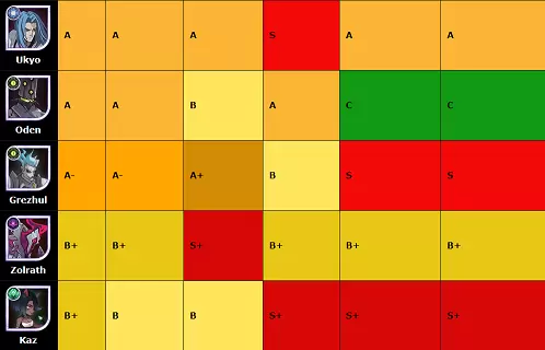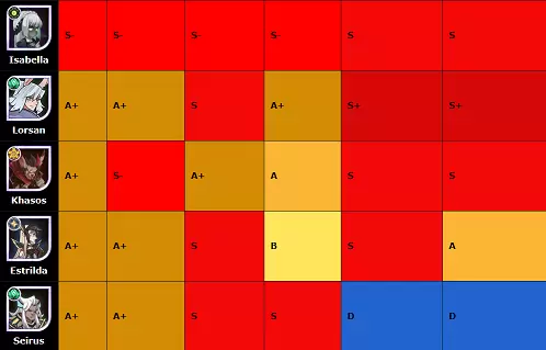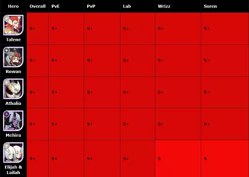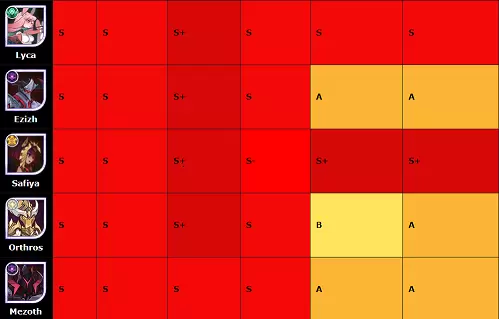这是关于残局内容的实验性英雄等级列表。假设英雄为240级以上。 5*提升,完全神话装备,并解锁签名项。