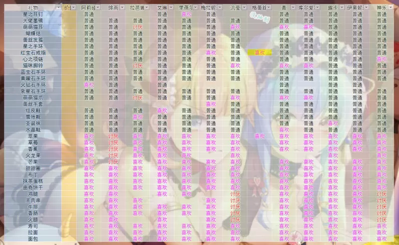 平常心情送喜欢饰品+3旦转为高兴,喜欢食物+3且转为高兴。普通饰品+1心情不变,讨厌食物-2且转为愤怒愤怒。