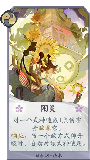阳炎:响应牌,对方回合触发时能晕眩对方2回合,非常强力的一张单卡,对单核卡组和中速卡组威胁较大,但是因为八段环境里快攻较多,所以只带了一张,根据环境可以调整带满。