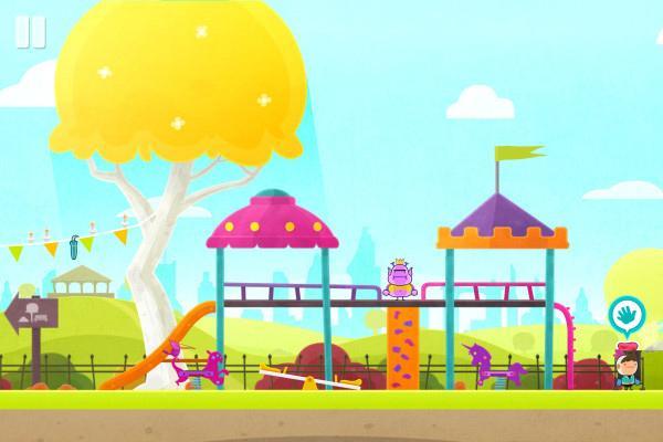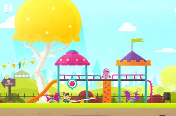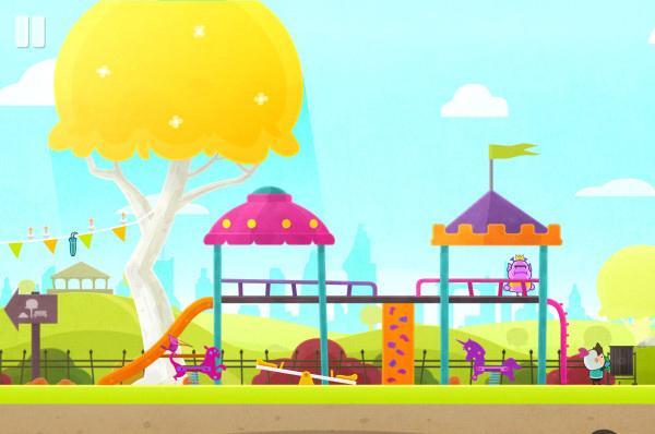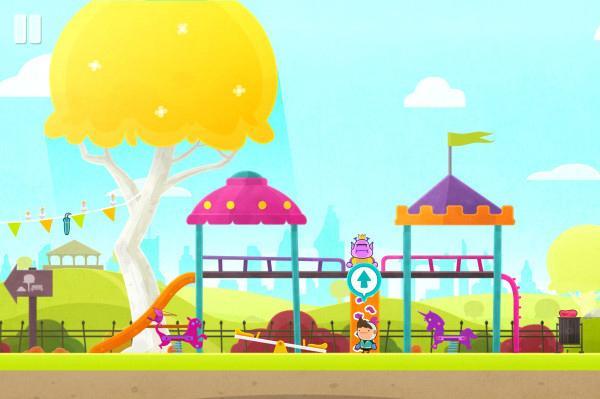 随后便会来到一个儿童乐园,场景中间有个非常大的滑梯设施,无论我们用哪个方式上去,都会被一个熊孩纸推下滑梯。这时点击中间的攀岩式楼梯,将熊孩纸引到中间的位置。