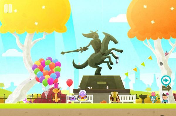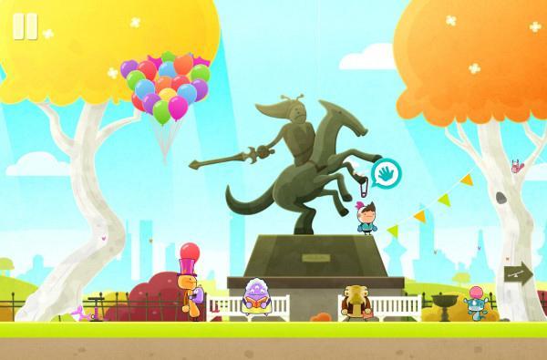 此时发现下方有一只鸟在飞来飞去。之后利用滑梯的三个出口,当鸟在右边木马上时,从顶部绕到它背后,然后快速跑过去抓住它。抓到鸟后回到广场下方,从长椅上到雕像下方后,来到左边用鸟将小朋友的气球啄破。看到痛哭的小朋友,气球商人赶紧拿了一个气球给他,并被热情的小朋友抱住了。这个时候主角偷偷跑过去将大堆气球解开,并利用气球的浮力来到了英雄像上。并顺利获得了本关的Nova部件。最后利用传送离开了这里。