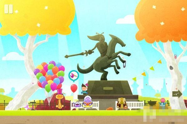 捉到小鸟后,回到左边的公园场景,通过点击右边的椅子令主角爬到雕像的底座上,然后走到拉着气球的小孩上方,利用小鸟戳破气球便会触发一段剧情。