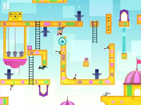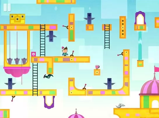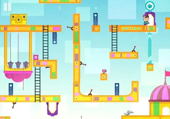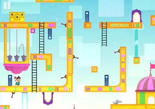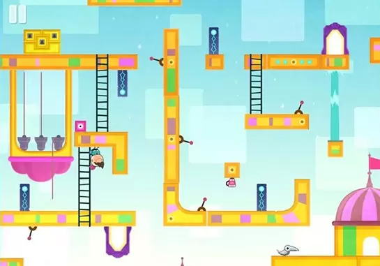 扳动机关使得跟上面的机关处在一个平行线上,我们的主角方才能自由移动。