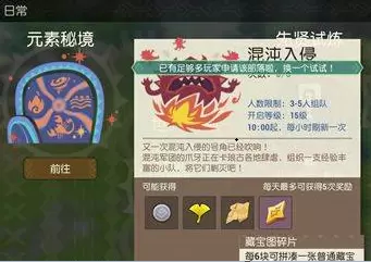 玩家可以参与混沌入侵,然后也可以获取藏宝图碎片,每天可以参加五次,10点钟之后每小时刷新一次。
