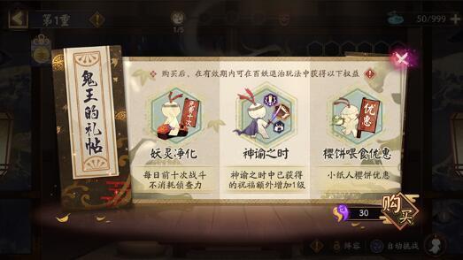 鬼王的礼帖:价值30魂玉,限时7天的鬼王之宴加成礼包。