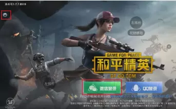 6、在和平精英登录界面,左上角显示腾讯游戏管家菜单悬浮球,表示手柄连接以及腾讯游戏管家映射正常。这边采用微信登录进入游戏。