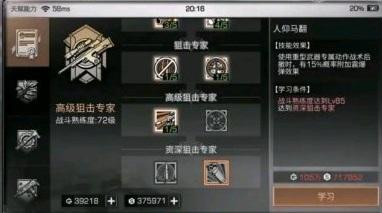 战斗熟练度达到Lv85,达到资深狙击专家。