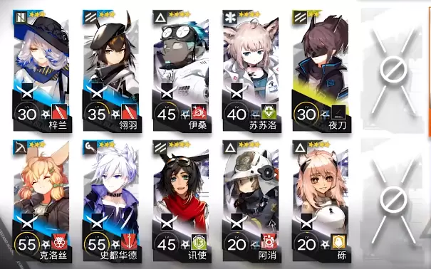 出门摆好两先锋。正面先锋输出能力高(德克萨斯、推进之王、其他精二先锋)的话不用下杀回辅助。