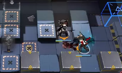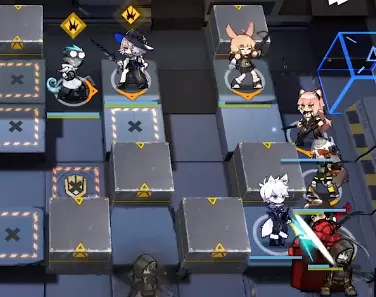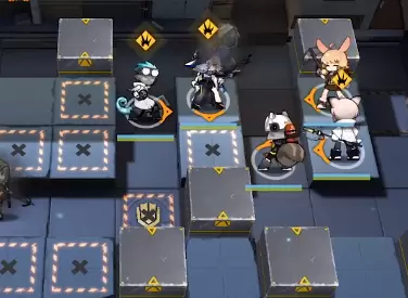 如果是上图练度的精一萌新玩家,最后可以如下图所示改变箱子a的位置,让敌方夺走一段回头路,并将自己的工具人干员和场下的辅助摆上来在家门口打最后一波(或者再度调箱)。