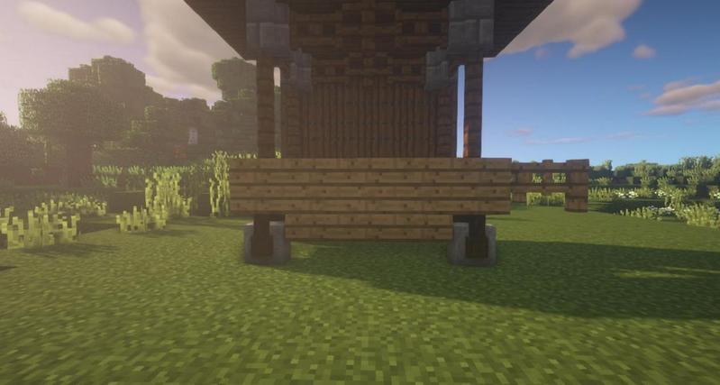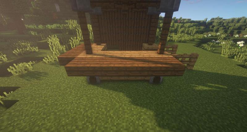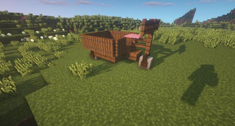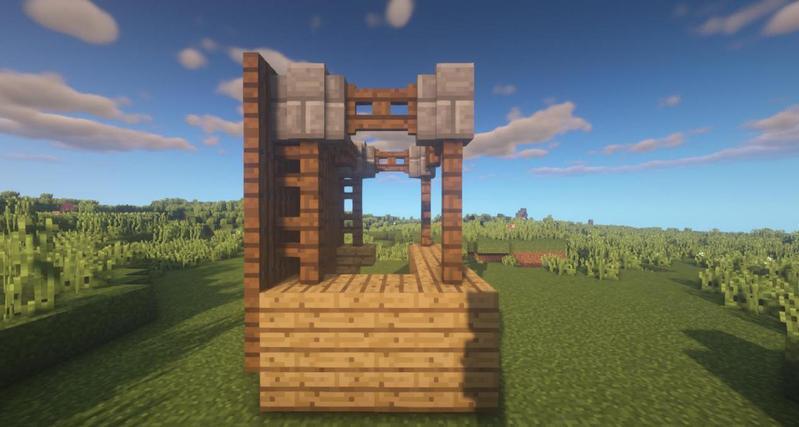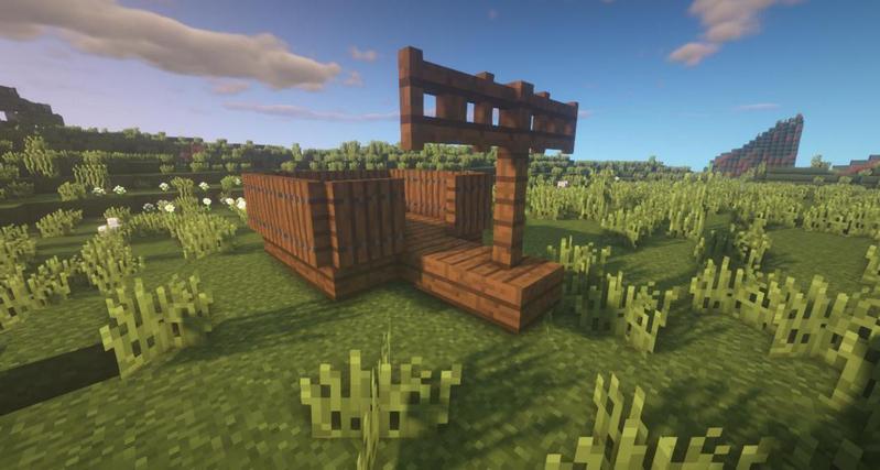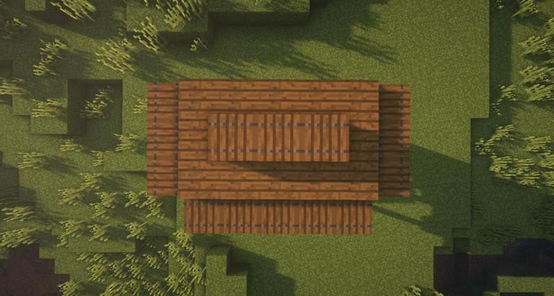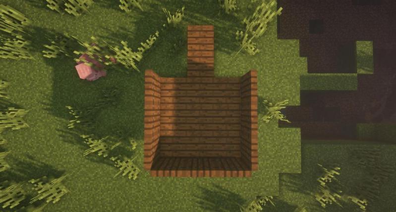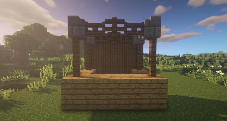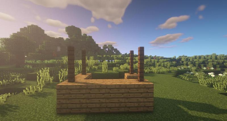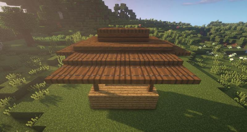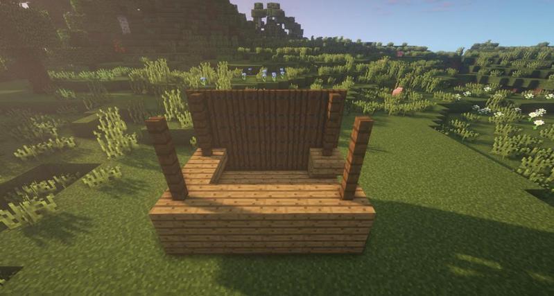 先用云杉木台阶搭一出如图所示形状,然后用云杉木活板门围住。