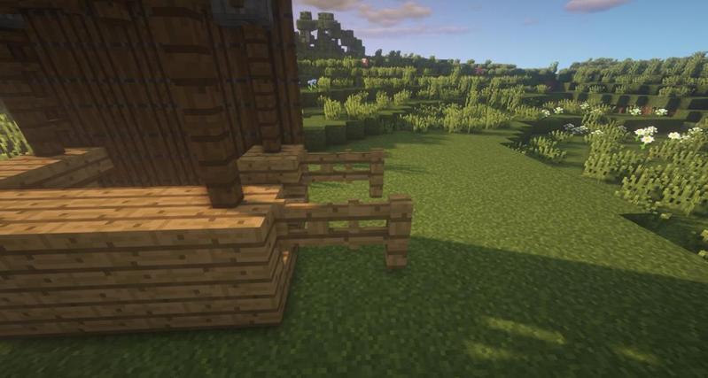 中间放上两格云杉木栅栏,两边放云杉木栅栏门,车把手就完成啦。