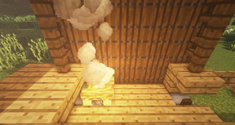 我们先来做一个炉子。放上营火,用白桦木活板门挡住,在上面放上灰色羊毛地毯。