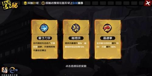 开局与每层通关后,员工有一次选择强化效果的机会(三选一),其中1、4、7、10层为遭遇战,2、5、8、11层为精英战,3、6、9、12为首领战,遭遇战与精英战每关探索值+100,首领战探索值翻倍。