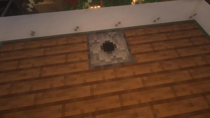最后在顶端放置一个白桦木活板门,石英块上放置一个按钮。