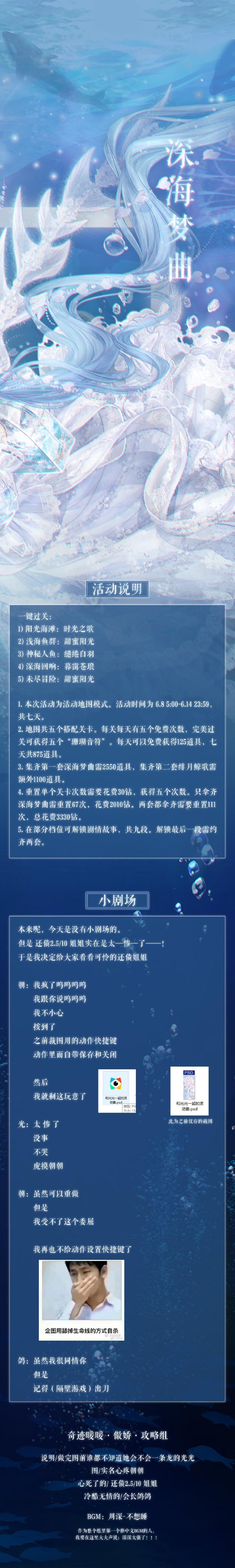 4、 集齐第一套深海梦曲需2550道具,集齐第二套绯月鲸歌需额外1100道具。