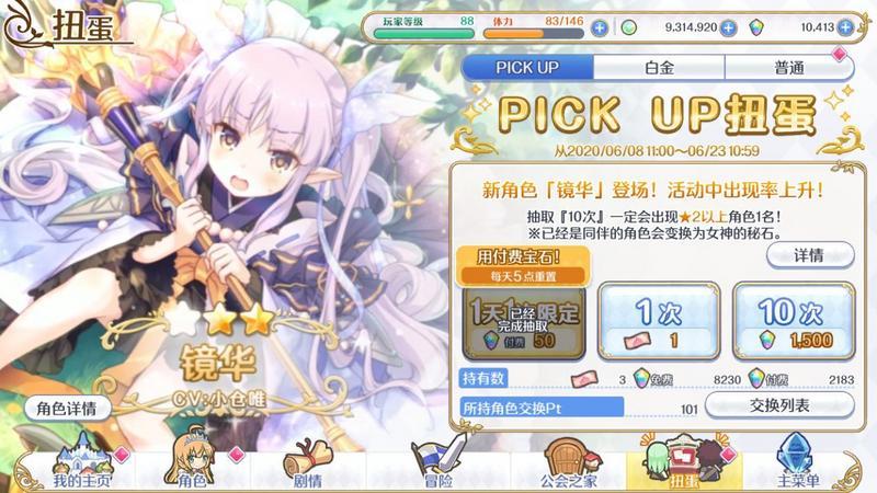 ps:新登场角色【镜华】也将加入白金扭蛋中(常驻)。