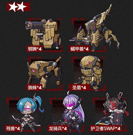 ★★:钢狮*4、蝎甲兽*4、狼蛛*4、圣盾*4、残兽*4、龙骑兵*4、护卫者SWAP*4