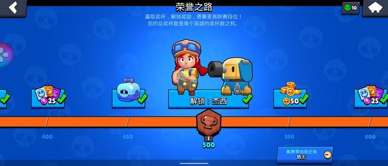 每个英雄只要打100分就能上500。250分的时候又会送一个公牛,500分的时候就会解锁杰西。这样我们一开始就能有七个英雄,上分的余地很大。
