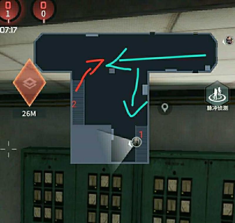 1、进入雷达站之后是室内的第一层,较为狭小,没有防守意义。第一时间不会有其他两方的角色进入这一层,相对而言比较安全。
