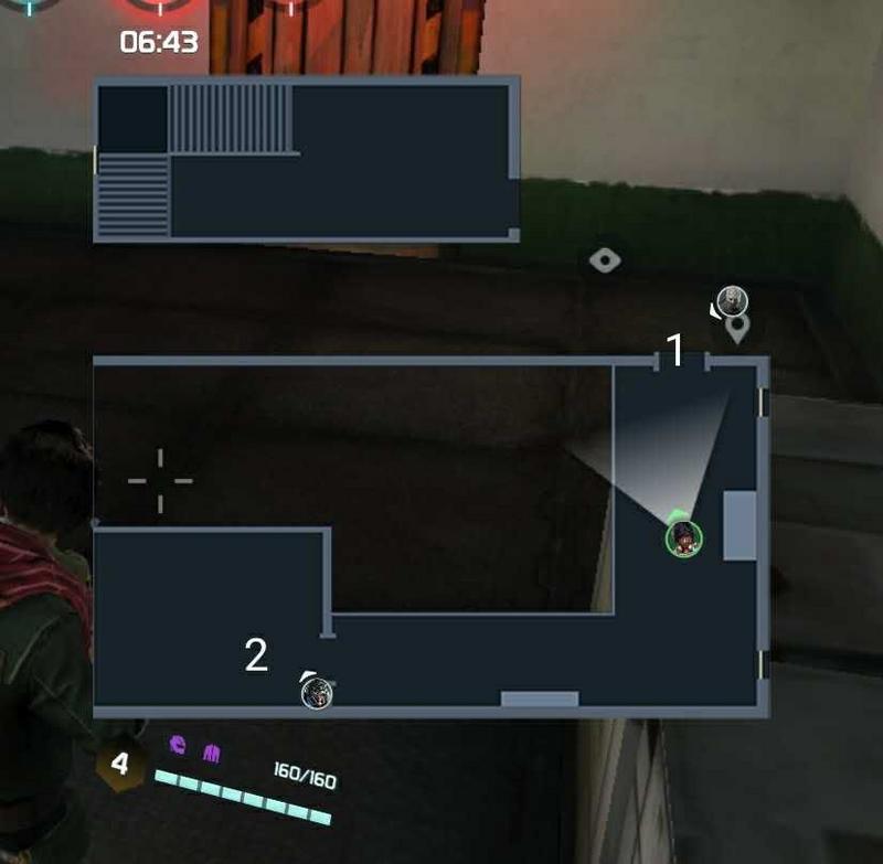 在游戏进行到中途时,敌对方的角色不会处于二号楼梯进行防守,原因是射击视野不够宽阔,不易射击且容易被“修脚”干掉。