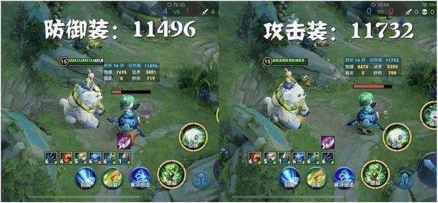 防御装大招总伤害:11496;攻击装大招总伤害:11732